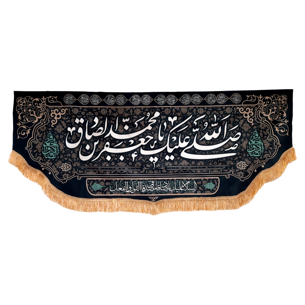کاربردهای متنوع: این کتیبه مذهبی میتواند در مجالس و مراسم عزاداری، هیئتها، مساجد، حسینیهها، و حتی منازل مورد استفاده قرار گیرد. نصب این کتیبه به عنوان نمادی از ارادت و عشق به امام صادق (علیه السلام)، فضای معنوی و روحانی خاصی به محیط میبخشد.