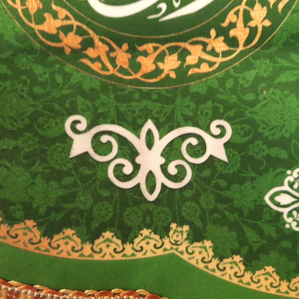 کتیبه مخمل علی بن ابی طالب یا امیر المومنین یا وصی رسول الله زمینه سبز