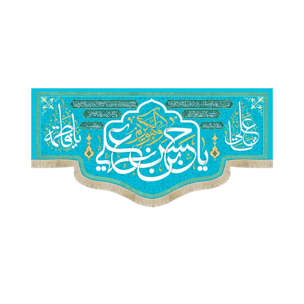 کتیبه مخمل یا حسن بن علی کناره ها یا فاطمه و یا علی زمینه آبی