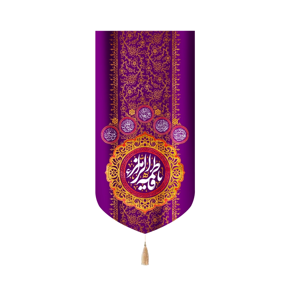 کتیبه مخمل یا فاطمه الزهرا عمودی زمینه بنفش