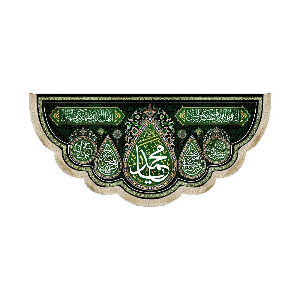 • کاربردهای متنوع: این کتیبه مذهبی می‌تواند در مجالس و مراسم عزاداری، هیئت‌ها، مساجد، حسینیه‌ها، و حتی منازل مورد استفاده قرار گیرد. نصب این کتیبه به عنوان نمادی از ارادت و عشق به حضرت محمد (صلی الله علیه و آله و سلم)، فضای معنوی و روحانی خاصی به محیط می‌بخشد.