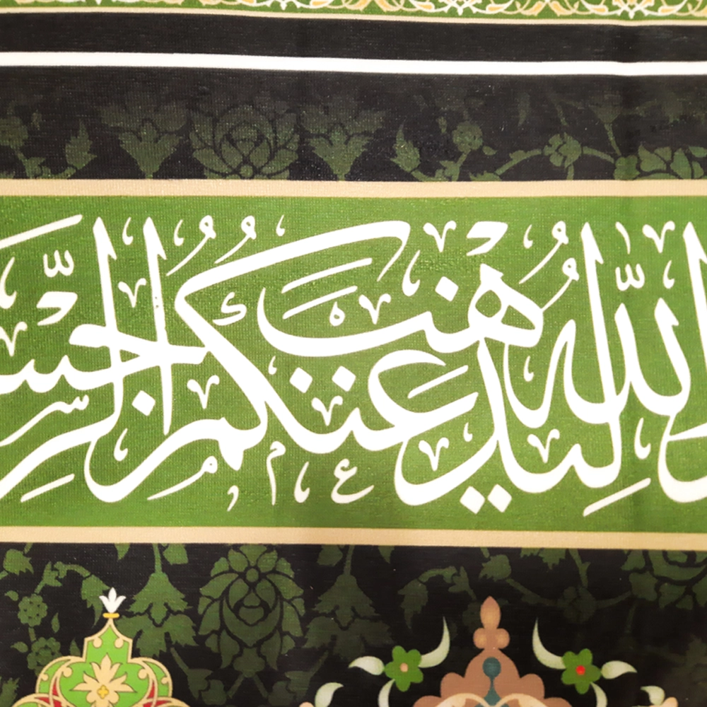• جنس با کیفیت: کتیبه از پارچه مخمل با کیفیت بالا تهیه شده است که علاوه بر دوام و مقاومت در برابر سایش، به آن زیبایی و لطافت خاصی می‌بخشد.