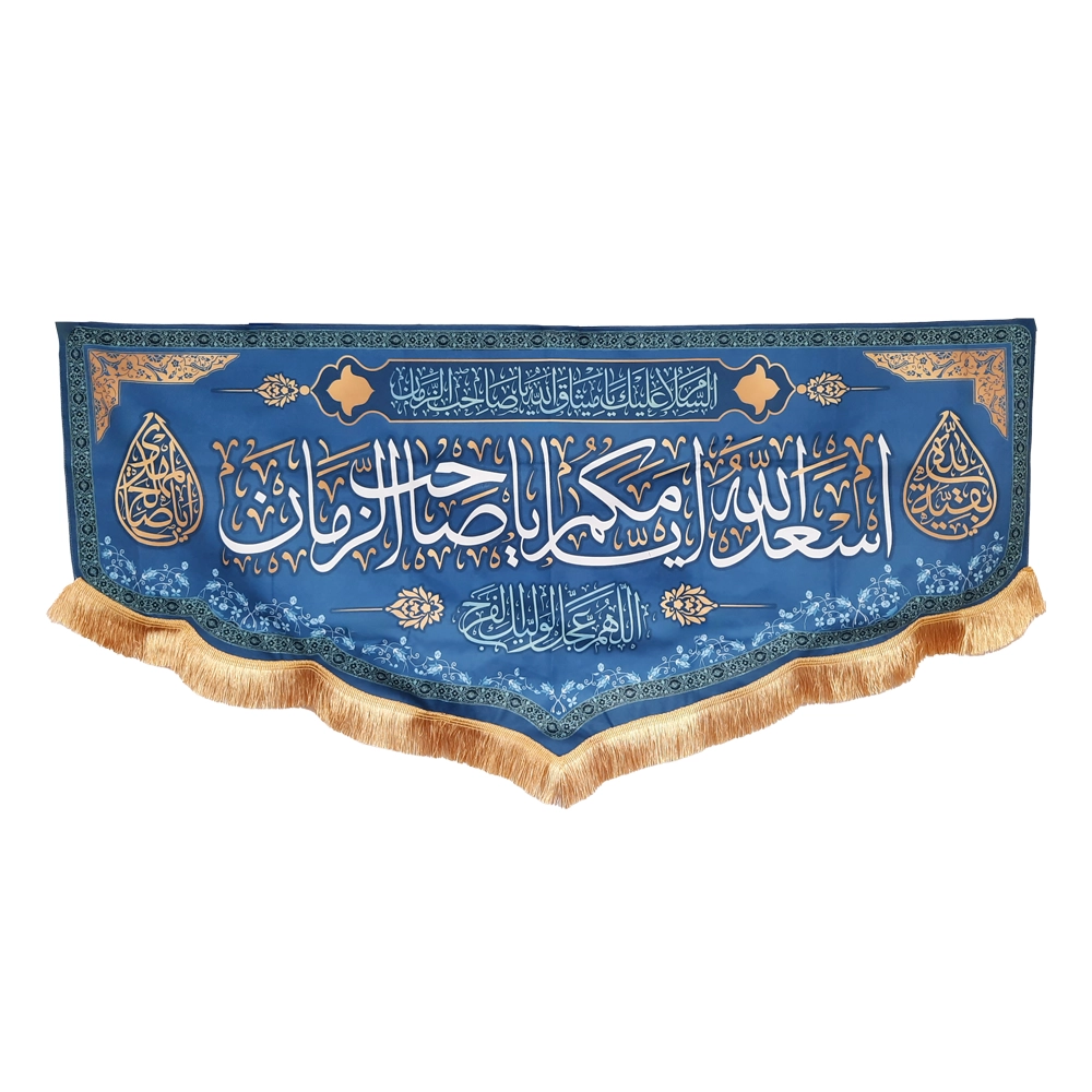 کتیبه نیمه شعبان مخمل اسعد الله ایامکم یا صاحب الزمان اللهم عجل لولیک الفرج زمینه آبی50762