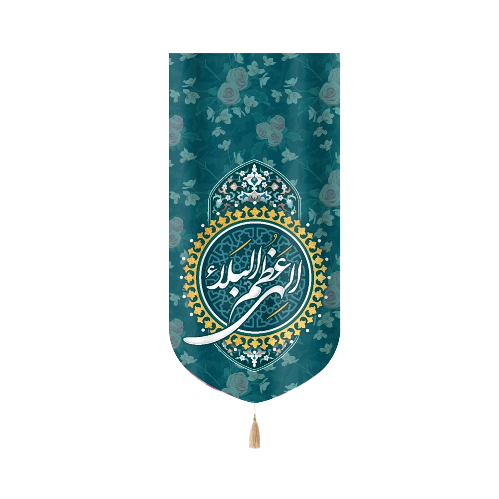 کتیبه نیمه شعبان مخمل با ذکر الهی عظم البلاء زمینه سبز عمودی تک عددی 50814