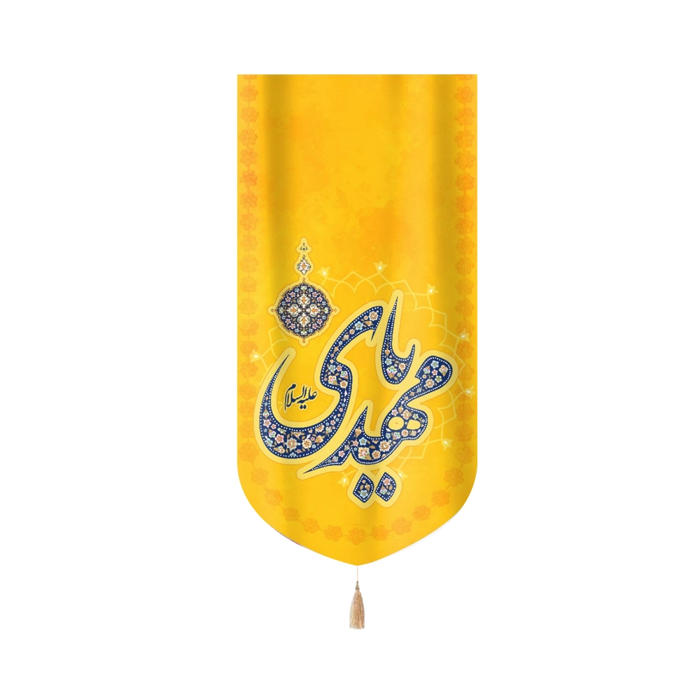 کتیبه نیمه شعبان مخمل یا مهدی علیه السلام زمینه زرد عمودی تک عددی50806