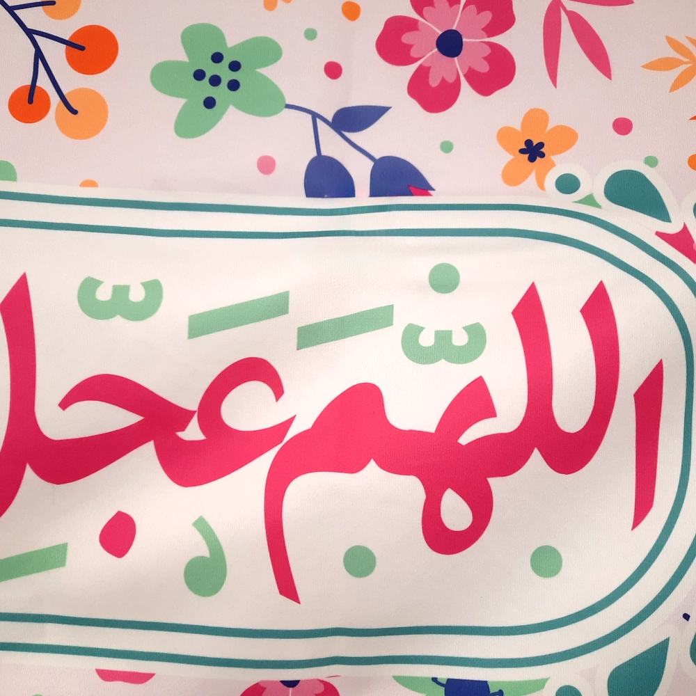 کتیبه نیمه شعبان کودک مخمل با شعار اللهم عجل لولیک الفرج زمینه گل و برگ و بنفش50768 Price range: ۸۷.۰۰۰ تومان through ۹۹۸.۰۰۰ تومان