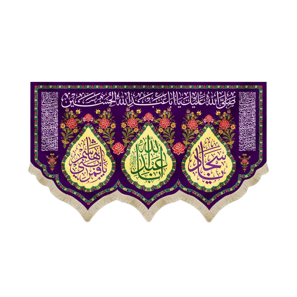 در طراحی این کتیبه، عبارتهایی نظیر یا عباس بن علی، یایا سجاد، سلاله رسولالله با خطاطی هنرمندانه در دو طرف کتیبه چاپ شدهاند تا جلوهای معنوی و باعظمت به فضا ببخشند.