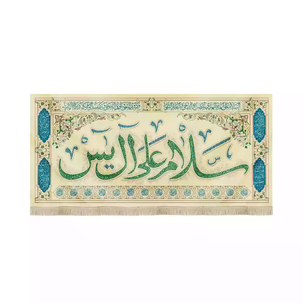 کتیبه نیمه شعبان مخمل افقی سلام علی آل یاسین کد 53432