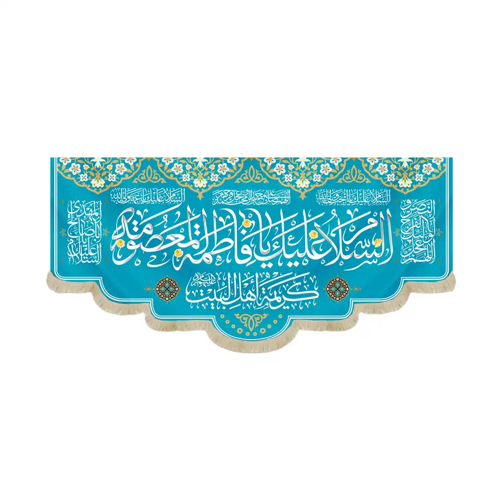 - سایز بزرگ (140×300 سانتیمتر): این سایز باشکوه، مخصوص نصب در بخشهای اصلی و پشت سنهای بزرگ مسجد یا تالارهای جشن طراحی شده است و بیشترین تأثیر بصری را برای مراسم جشن ایجاد میکند.